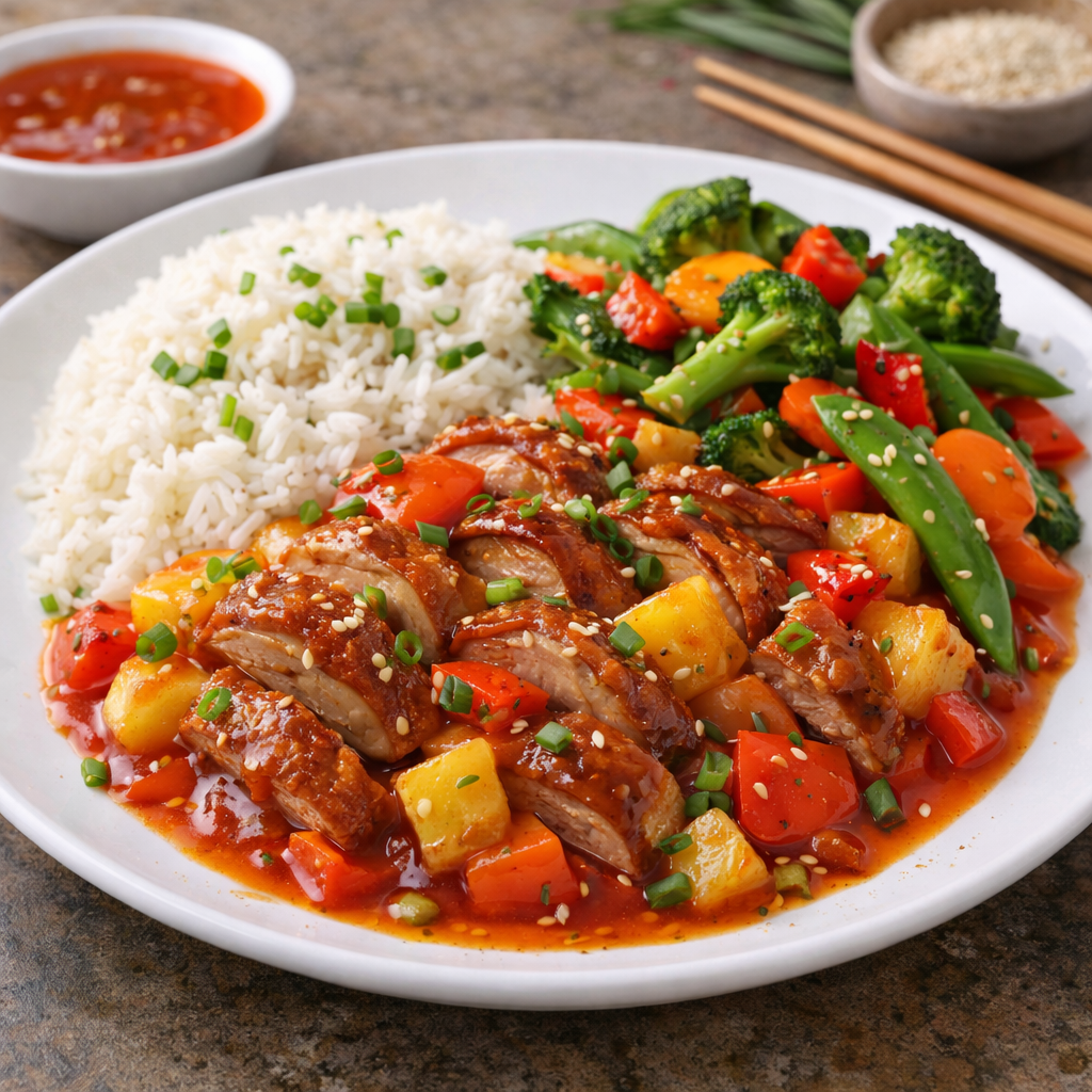 Ente süss-sauer – Reis – Wokgemüse